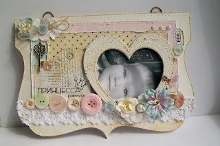 У меня получилась "очумелая" фоторамка. Ход творения таков. Подбираем необходимые материалы: плотный картон 3мм, 2 листа из набора бумаги 30х30 Spring Feast, лист зеленой бумаги Тима Хольца, кружево, ленты, цветок гардении, розы, пуговички, металлическая бабочка, анкер-чипборд из набора, брадсы, люверсы - то что можно закрепить не используя клей, установщик люверсов. В процессе работы добавила еще вырубку завитки. |
